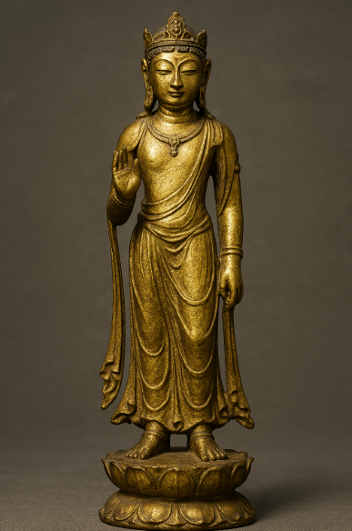 따라서 금동보살입상의 조형미를 논할 때, 그것이 봉안되었을 물리적, 상징적 건축 맥락을 함께 이해하는 것은 필수적이다. 불상은 공예 기술만으로 만들어진 조형물이 아니라, 불교 세계관을 전달하는 건축적 장치이자 종교적 실천의 공간 중심체였다. 이 보살입상이 위치했을 불단, 그 불단을 중심으로 설계되었을 금당의 구조, 그리고 참배객이 접근하며 경험했을 시선의 흐름까지 아울러 고려할 때, 비로소 우리는 이 불상의 총체적 가치를 보다 정확하게 인식할 수 있다.
